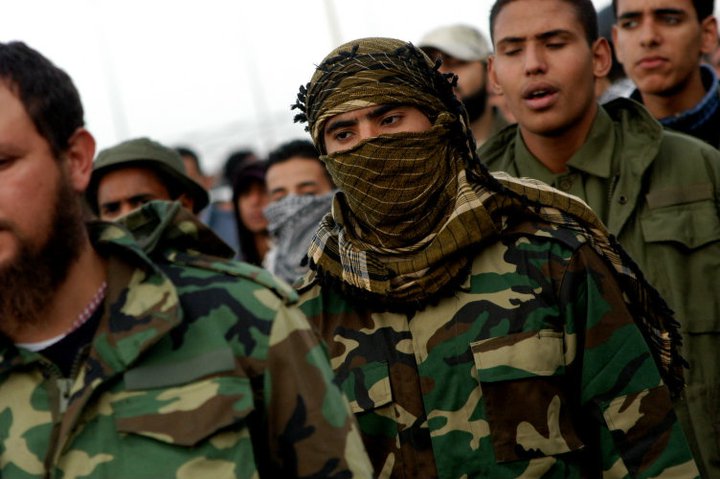 New rebel recruits march down Freedom Square in Benghazi only hours before two bombs were dropped by Qaddafi forces on rebel training grounds and munitions depot on the outskirts of the city, killing dozens of rebels
