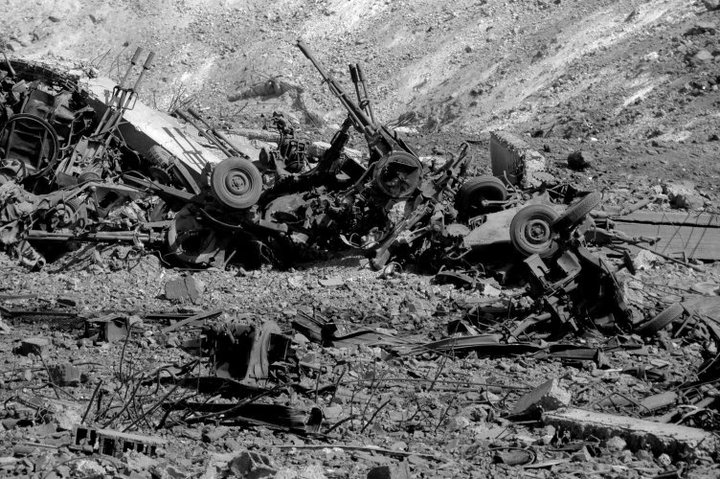 Bombing of the arms depot and rebel training camp in Bengahzi. Dozens of soldiers killed, hundreds of weapons destroyed. As we walked through the smoldering ashes with weapons ranging from RPG’s, machine guns, anti-aircraft guns, with munitions everywhere more MIG jets began flying above sending everyone scrambling for cover