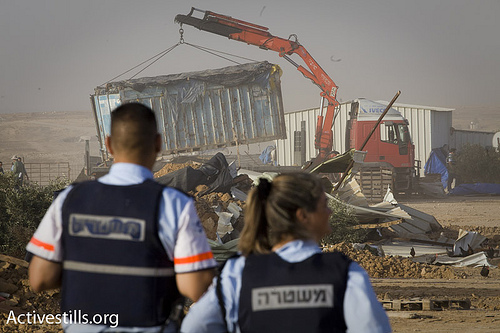 AL-ARAKIB, ISRAEL — On July 26, Israeli police demolished 45 buildings in the unrecognized Bedouin village of al-Arakib, razing the entire village to the ground to make way for a Jewish National Fund forest. The destruction was part of a larger project to force the Bedouin community of the Negev away from their ancestral lands and into seven Indian reservation-style communities the Israeli government has constructed for them. The land will then beopen for Jewish settlers, including young couples in the army and those who may someday be evacuated from the West Bank after a peace treaty is signed. For now, the Israeli government intends to uproot as many villages as possible and erase them from the map by establishing “facts on the ground” in the form of JNF forests. (See video of of al-Arakib’s demolition here).