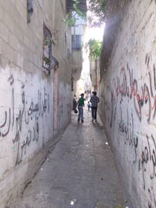 When we left the falafel place I saw those children again. I read that a large majority of children here exhibit symptoms of trauma. Most have seen their fathers beaten. Most have seen someone killed in front of them. During the Second Intifada Israeli troops entered the houses by blasting through their walls.