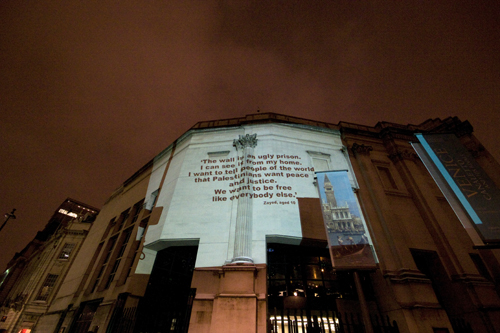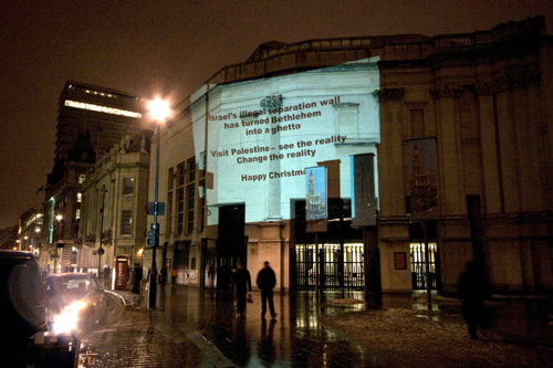 Yesterday we wrote about photojournalist William Parry’s Christmastime project in London: projecting images of Israel’s apartheid wall in Bethlehem onto monuments and buildings in the British capital.