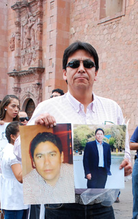 Chihuahua was one of the few states that didn’t draw many new people out to the protests because many stayed home out of fear. Marta Garcia (shown above) carried a picture of her neighbor’s husband to the march in Chihuahua City because her neighbor was too afraid to participate herself. The man in her photo, Oscar Zavala, was murdered on July 25, 2009, when unidentified gunmen opened fire on a group of men waiting outside of his sister-in-law’s baby shower in Chihuahua City.