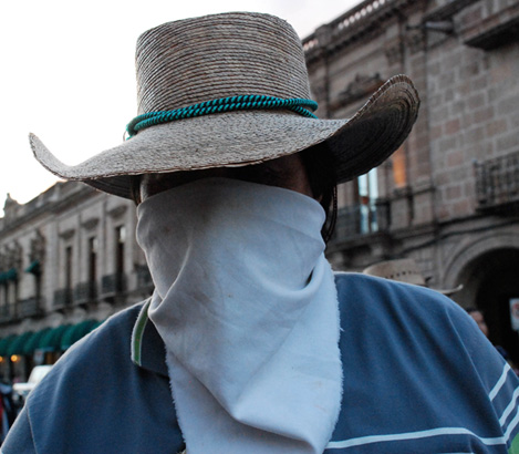 Indigenous residents of Cherán, Michoacan, marched with the caravan in Morelia with their faces covered. Residents have maintained barricades in Cherán since April 15 to keep out kidnappers and illegal loggers who are in league with organized crime.