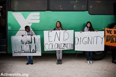 Fired by the same drive for dignity and pride, six Palestinian nonviolent activists boarded last week an Israeli settler bus to draw the world’s attention to the segregated transportation systems and apartheid conditions they endure living under Israel’s brutal 44-year military occupation of the Palestinian West Bank and East Jerusalem. Channeling Frederick Douglass, spokesperson Hurriyeh Ziadah asserted, “Our rights will not voluntarily be handed to us, so we are heading out to demand them.