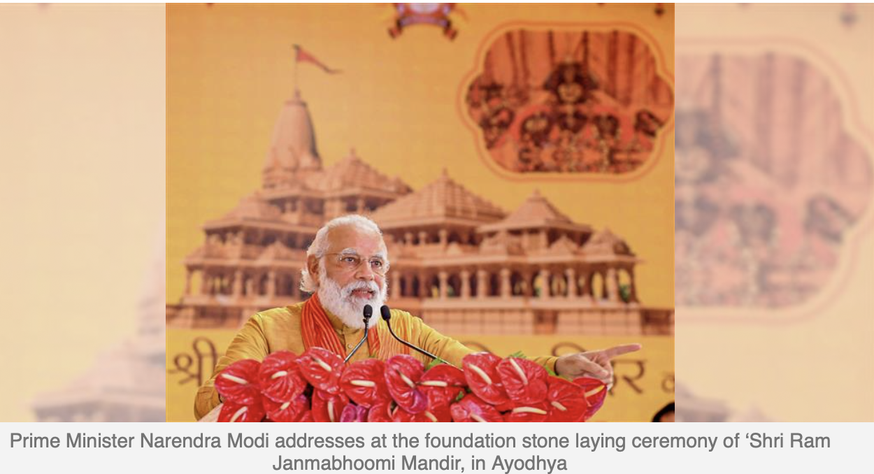 BJP chose the first anniversary of the violent annexation of Kashmir, Aug 5, 2020, as the day to mark the temple being built after the illegal destruction of the 16th century Babri Masjid.