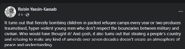 (* For “stealing a people’s country” read the ethnic cleansing of Palestine.)