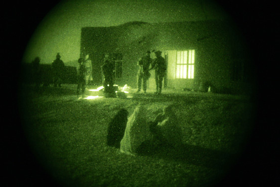 Afghan women and children wait as U.S. Special Operations forces and Afghan soldiers search their home during a night raid in Farah province. (Associated Press)