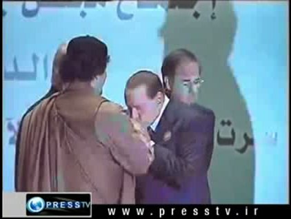 Previous Image Next Image BERLUSCONI_BACIO Il Cavaliere may have also noticed Muammar Qaddafi’s tan while paying his respects this past March.