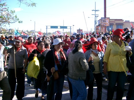 Zelaya supporters outside airport. (Photo by Belén Fernández)