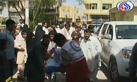 Previous Image Next Image jundallah_Pisheen Screengrab from al-Alam TV footage of a wounded man arriving at a hospital in Pisheen. Photograph: Al-Alam/AFP/Getty Images