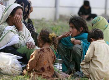 An internally displaced woman, fleeing military operations in Buner, sits with her children at a UNHCR camp (United Nations High Commission for Refugees) in Mardan, about 100 km (60 miles) northwest of Pakistan’s capital Islamabad May 7, 2009. Security forces launched an offensive on April 26, 2009 to expel militants from two of Swat’s neighbouring districts, Dir and Buner. Up to 38,000 people have been displaced from Swat and nearby areas since fighting flared last month, provincial authorities said on May 6, 2009, adding that up to 800,000 people could flee from the valley, which has a population of about 1.6 million. REUTERS/Faisal Mahmood (PAKISTAN SOCIETY POLITICS CONFLICT)