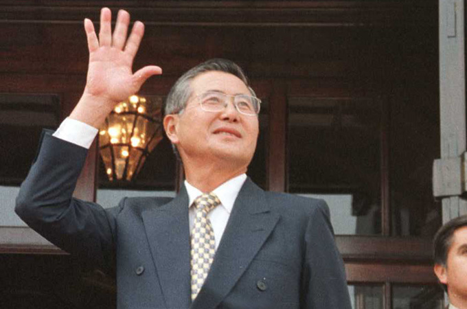 370251 01: Peruvian President Alberto Fujimori Waves To Departing Cabinet Ministers May 28, 2000 At The Entrance Of The Presidential Palace In Lima, Peru. With Most Of The Vote Counted From The Runoff Election, Fujimori Has Won A Third Term As President Against Opposition Candidate Alejandro Toledo, Who Was Boycotting The Runoff. (Courtesy Of The Presidential Palace) (Photo By Getty Images)