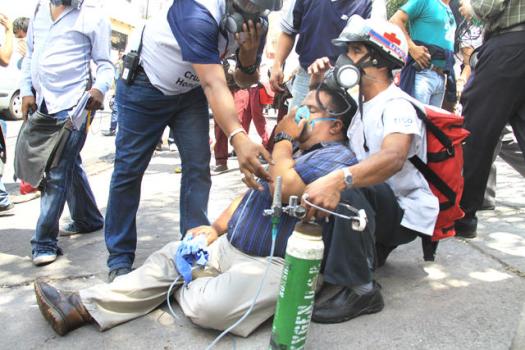 Previous Image Next Image represion Honduran Red Cross apprehends Venezuelan-Nicaraguan posing as tear gas inhalation victim.