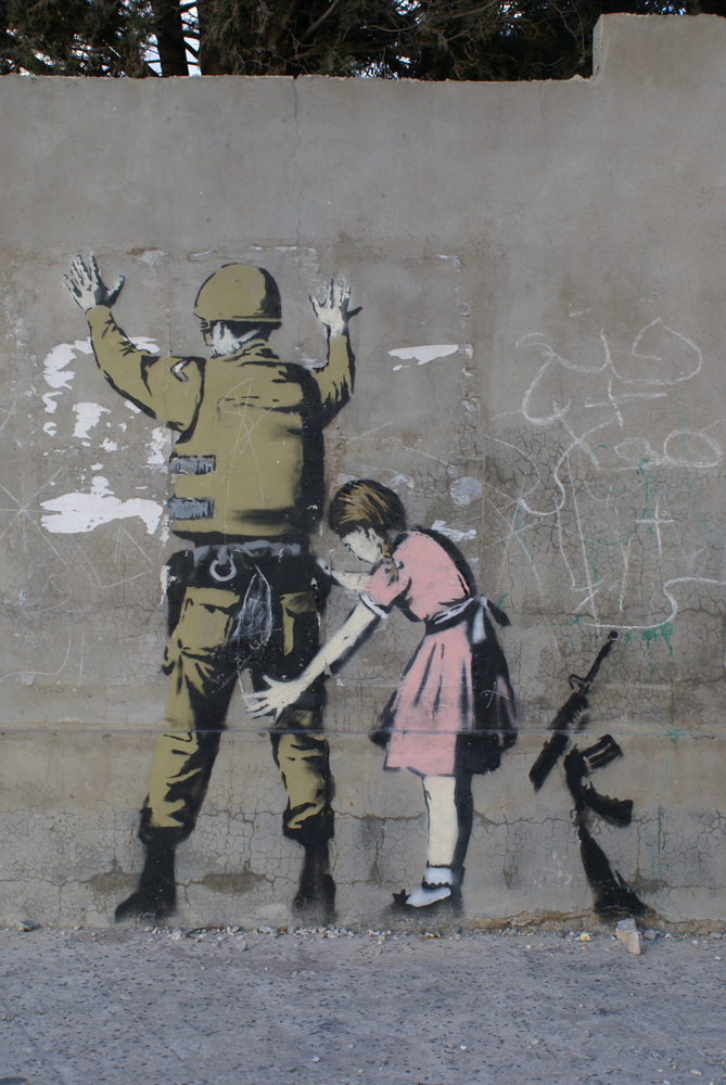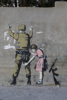Banky’s image of a girl frisking an Israeli soldier.