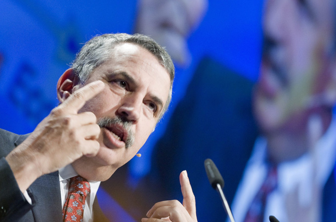 Thomas L. Friedman, NY Times columnist and Pulitzer Prize winning author, gives a speech during the Swiss Economic Forum (SEF), in Thun, Switzerland, 14 May 2009. EPA/PETER SCHNEIDER